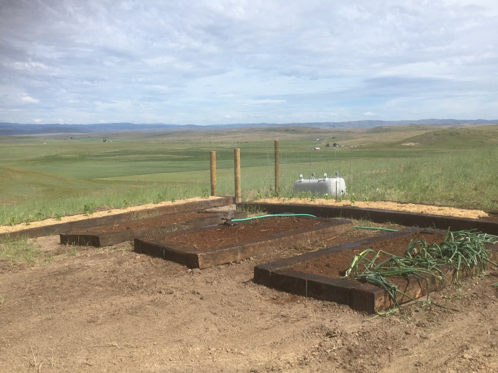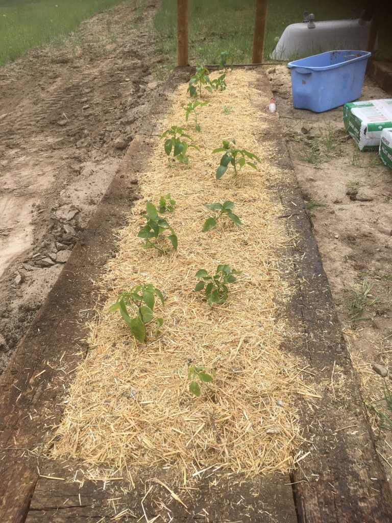 It is past time to finish planting gardens here, but I have been waiting till we had a well pump and electricity to run it. We got the last of those last week, so we laid out the garden and planted it.