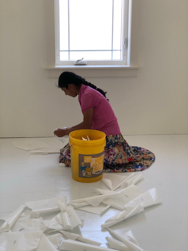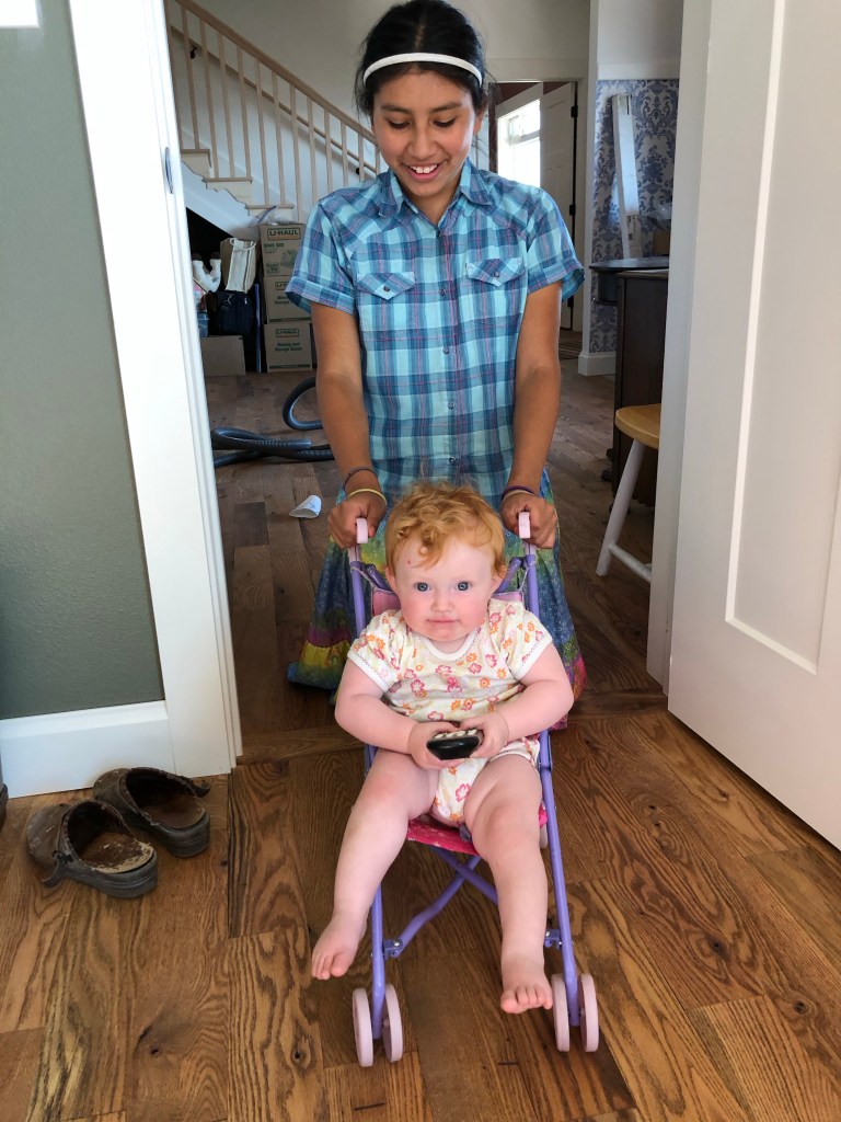 Elsie is in the middle of painting the house exterior. Right now you can see exactly how high the ladder goes!